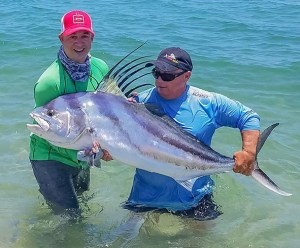 As you know at The Fly Zone we practice casting all the time. We try to recreate real life experiences and challenges; like windy day casting, or getting your fly to lay out straight at 80 feet so when you strip your fly you can come tight immediately. Not that you have to cast 80 feet but it is nice to know you can, the reality is most fish are caught with an accurate cast between 20 and 60 feet. So why do we practice? We practice so we are ready for the opportunity to catch a fish of a lifetime. The Fly Zone is not just a class, it is an attitude, a confidence, it’s the ability to self correct your own casting problems when your fishing. We all want to improve, me included, have fun and maximize our time on the water. The Rooster fish above is a testament to staying in the moment, making a good cast, and being lucky that all the knots held fast! LOL You just never know when a fish of a lifetime tracks and eats your fly, belly on the sand, two feet off the beach. Unless you practice for that moment and it can never be visualized! Tight lines!