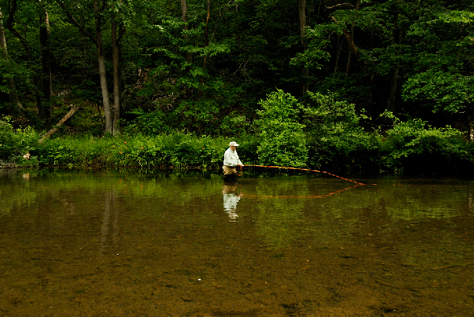 Lefty made it look so easy. Look how relaxed his casting arm is, tucked in tight to his body, maintaining the maximum load into the rod tip as he stops the rod to release the cast. Notice how he drifts back slightly, maintaining a straight line path before beginning the forward cast, then stopping the rod and ducking the rod tip on the forward cast. You can put those loops through a screen door! Poetry in motion. This sequence was shot in stills by Ed Jaworowski
